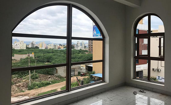 Glass thickness is selected based on the height of window (min 5mm). Glass design may be tempered or laminated according to clients requirment
